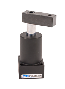 SC Series swing clamps operate with compressed air or petroleum-based hydraulic fluid, the FML Series uses compressed air and the FHL Series is a hydraulic model.